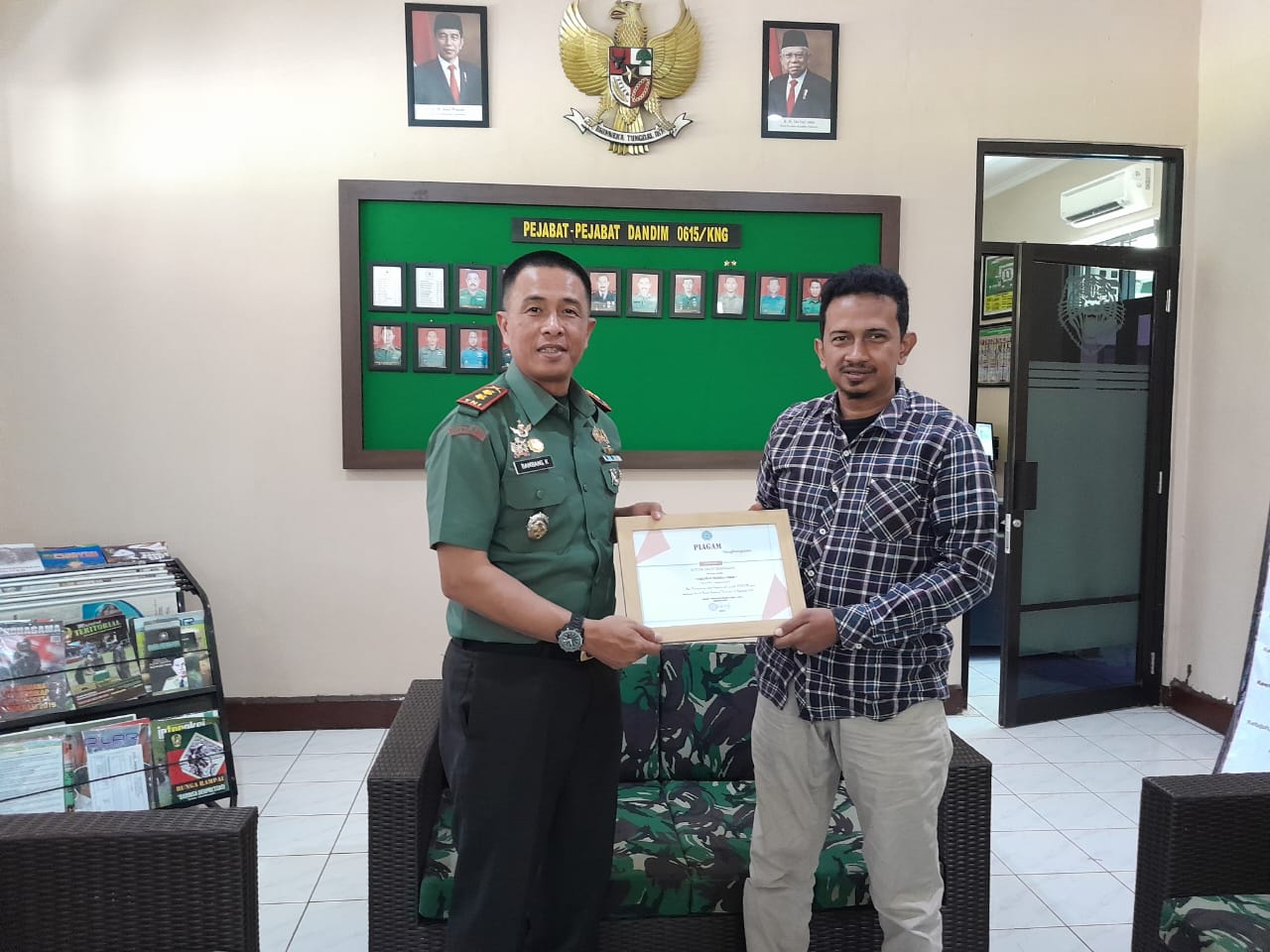 Bingkaiwarta, KUNINGAN – Dandim 0615 Kuningan Letkol Inf Bambang Kurniawan terima piagam penghargaan sebagai “Pahlawan Pembela UMKM” versi Aliansi Persatuan Pelaku UMKM (APPU) Kabupaten Kuningan untuk kategori Instansi, yang diserahkan langsung oleh perwakilan APPU di Makodim 0615/KNG, Jl. RE Martadinata, Ciporang, Kuningan, Rabu (21/9/2022).
