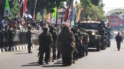Bingkaiwarta, KUNINGAN – Sejumlah personil Kodim 0615/KNG unjuk kemampuan di Jalan Raya Siliwangi tepatnya di depan Pendopo Kuningan dalam gelaran Karnaval Budaya Hari Jadi ke-526 Kuningan yang dilaksanakan oleh Pemerintah Daerah Kabupaten Kuningan, Minggu (25/8/2024).