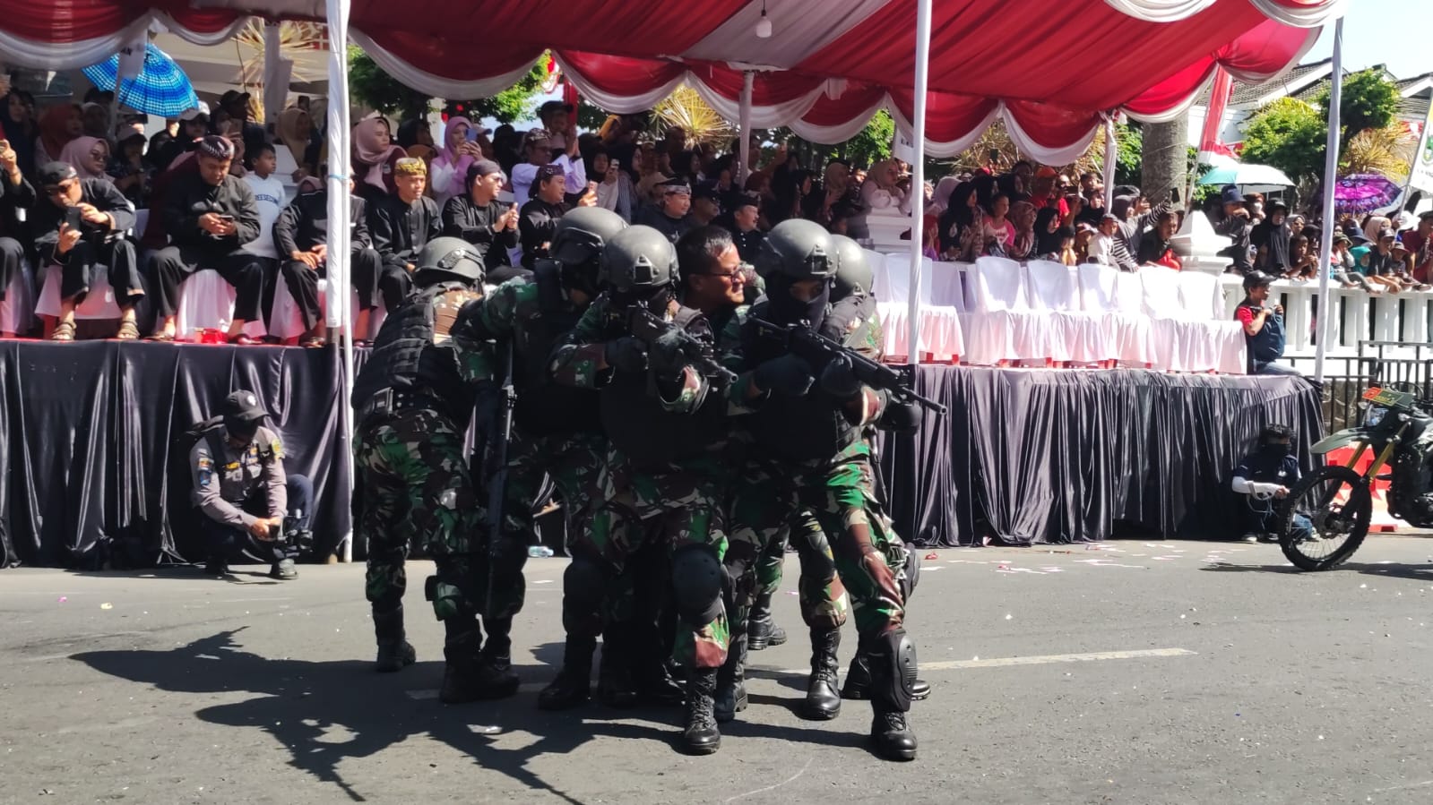 Dalam penampilannya, sejumlah personil Kodim 0615/KNG melakukan atraksi simulasi pembebasan tawanan ataupun sandera pejabat VVIP dari para perampok bersenjata. Aksi dramatis ini mencerminkan kesiapan TNI dalam menghadapi situasi darurat untuk melindungi warga negara.
