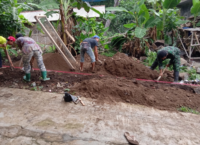 Sertu Agus menyampaikan, kegiatan karya bakti pelebaran jalan ini dilaksanakan karena melihat kesulitan masyarakat saat memasuki jalan kampung.