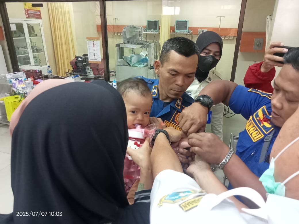 Tangisan balita yang histeris langsung menarik perhatian Rudiana, petugas keamanan RSUD 45 Kuningan. Ia segera menghubungi Call Center Damkar untuk meminta pertolongan.