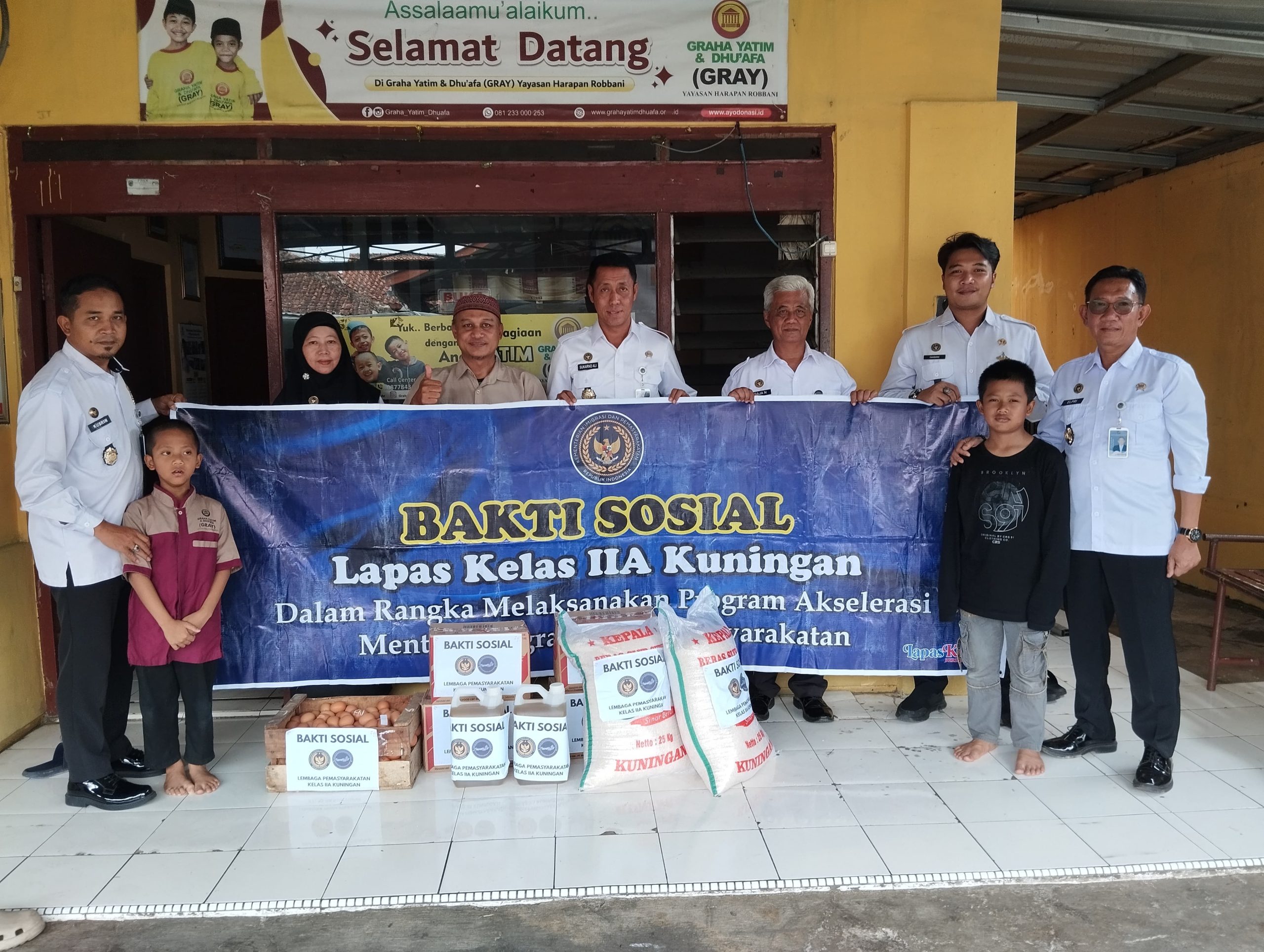 Bingkaiwarta, KUNINGAN – Lembaga Pemasyarakatan (Lapas) Kelas IIA Kuningan menggelar aksi kepedulian dengan menyerahkan bantuan kepada Yayasan Graha Yatim dan Dhuafa, sebagai wujud implementasi Program 15 Akselerasi yang digagas Menteri Imigrasi dan Pemasyarakatan.