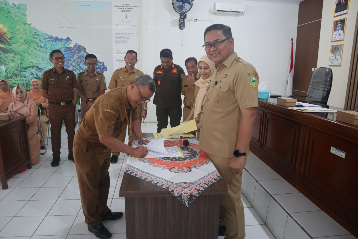 Bingkaiwarta, KUNINGAN – Dinas Ketahanan Pangan dan Pertanian (Diskatan) Kabupaten Kuningan menyelenggarakan acara pisah sambut sekaligus serah terima jabatan bagi Pejabat Administrator, Selasa (13/1/2026) di Aula dinas. Kegiatan yang menjadi bagian dari dinamika organisasi dan penguatan tata kelola pemerintahan ini dihadiri langsung oleh Kepala Diskatan Dr. Wahyu Hidayah, jajaran pejabat struktural dan fungsional, Ketua Dharma Wanita Persatuan (DWP) Rika Farliani, beserta anggotanya, serta seluruh keluarga besar Diskatan.