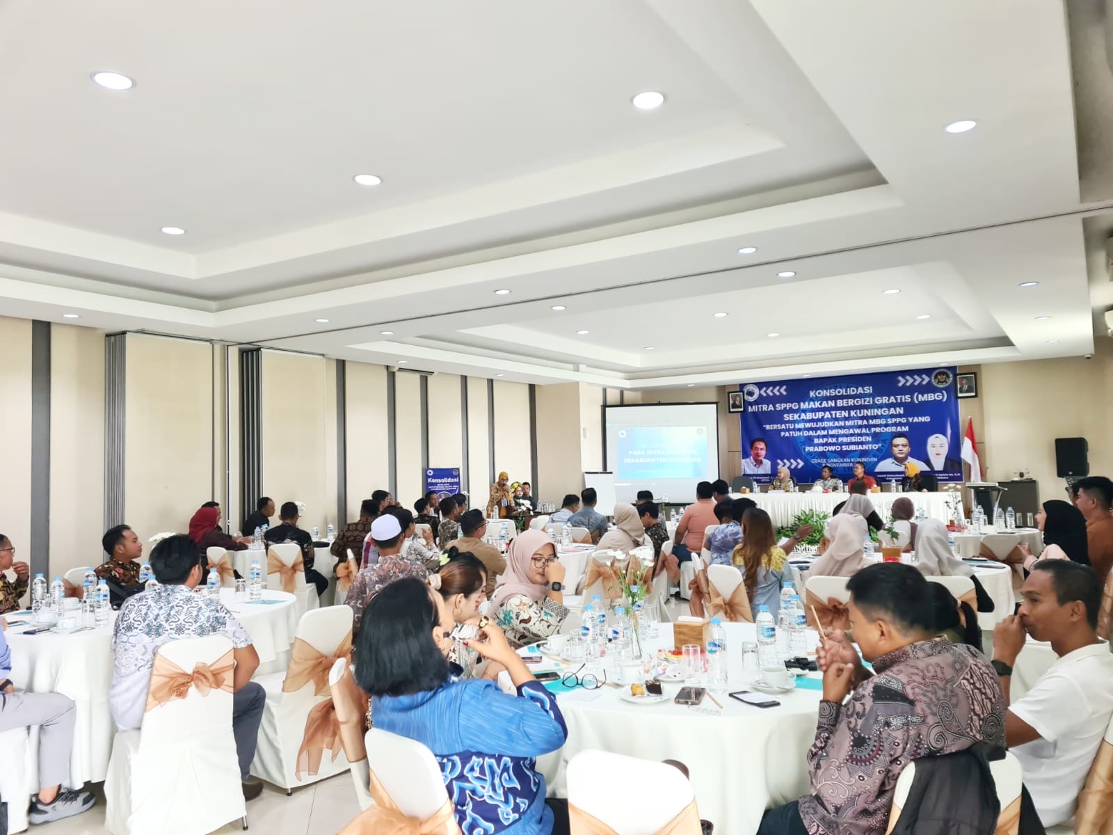 Acara yang bertajuk “Konsolidasi Mitra SPPG Makan Gizi Gratis (MBG) se-Kabupaten Kuningan” ini dihadiri oleh para pemilik dapur MBG dengan semangat tinggi untuk “Bersatu Mewujudkan Mitra MBG SPPG Yang Patuh Dalam Mengawal Program Bapak Presiden Prabowo”.