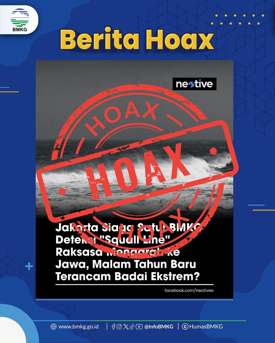 Bingkaiwarta, JAKARTA — Badan Meteorologi, Klimatologi, dan Geofisika (BMKG) memastikan bahwa informasi yang beredar luas di media sosial dan pesan berantai terkait ancaman fenomena squall line atau garis badai yang diklaim akan menghantam wilayah Jabodetabek secara destruktif pada malam pergantian tahun merupakan informasi tidak benar atau hoaks. Penegasan tersebut disampaikan BMKG melalui keterangan resmi yang dirilis pada Selasa (31/12/2025).