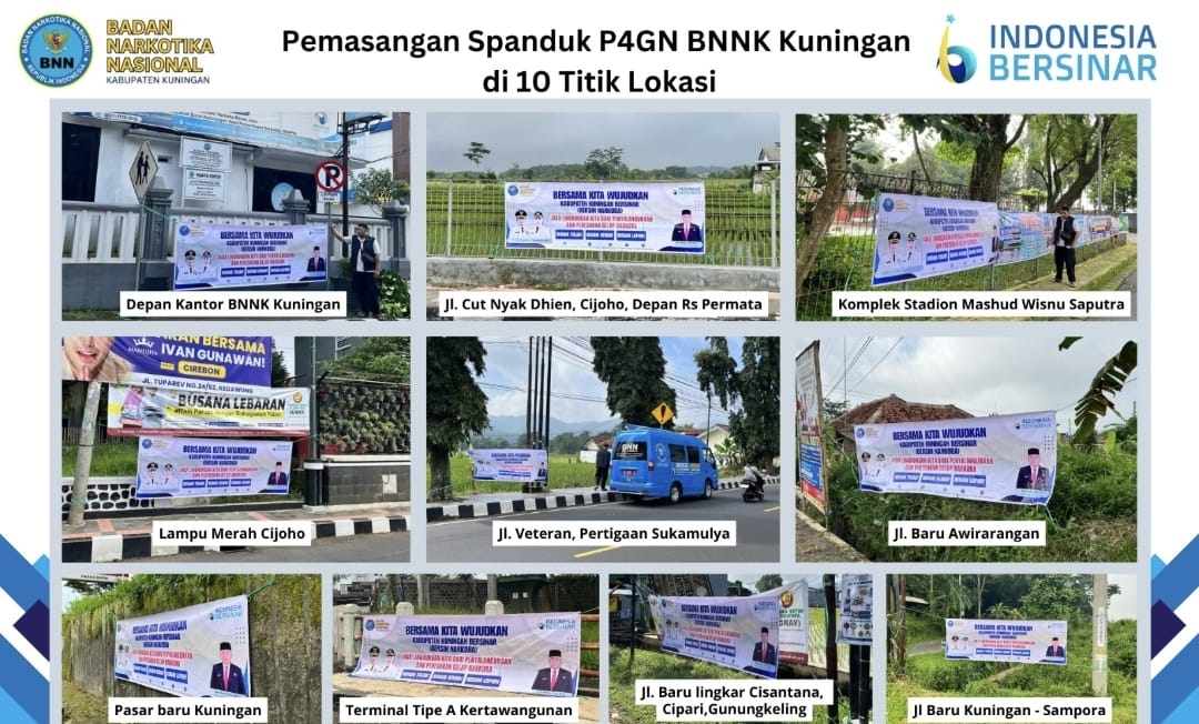 Kegiatan pertama dilakukan pada Selasa hingga Rabu, 25-26 Maret 2025, berupa pemasangan spanduk P4GN di 10 titik strategis di Kabupaten Kuningan, yaitu: