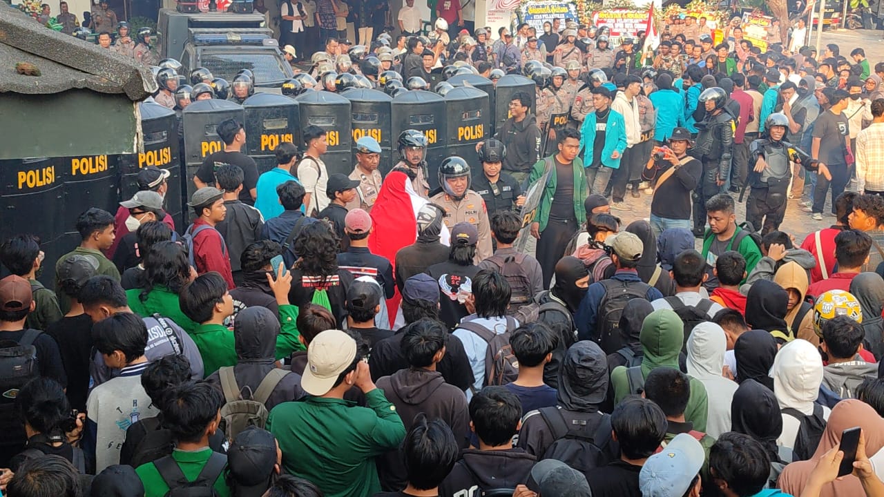 Bingkaiwarta, CIREBON – Aksi unjuk rasa menolak Revisi Undang-undang Pilkada dari ribuan massa yang tergabung dalam Organisasi Cipayung, Mahasiswa Cirebon Raya dan Buruh, di depan kantor DPRD Kota Cirebon, berakhir ricuh, Jumat (23/8/2024).