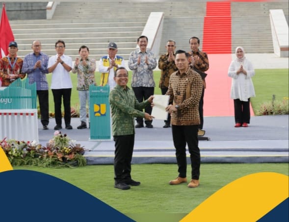 Bingkaiwarta, NUSANTARA – Menteri Agraria dan Tata Ruang/Kepala Badan Pertanahan Nasional (ATR/BPN), Agus Harimurti Yudhoyono (AHY) mendampingi Presiden Joko Widodo dalam Peresmian Istana Negara di Ibu Kota Nusantara (IKN), Provinsi Kalimantan Timur, Jumat (11/10/2024). Dalam kesempatan ini, Menteri AHY menyerahkan Sertipikat Tanah Elektronik berupa Hak Pakai untuk Istana Negara dan Istana Garuda kepada Menteri Sekretaris Negara, Pratikno di hadapan Presiden Joko Widodo.