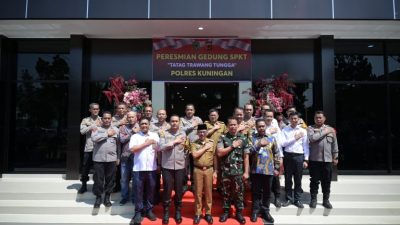 Bingkaiwarta, KUNINGAN – Gedung Sentra Pelayanan Kepolisian Terpadu (SPKT) Tatag Trawang Tungga Polres Kuningan akhirnya di resmikan. Setelah 1 tahun proses pembangunan. Peresmian dilakukan oleh Pj Bupati Kuningan, Iip Hidajat didampingi Kapolres Kuningan AKBP Willy Andrian, Senin (2/9/2024).