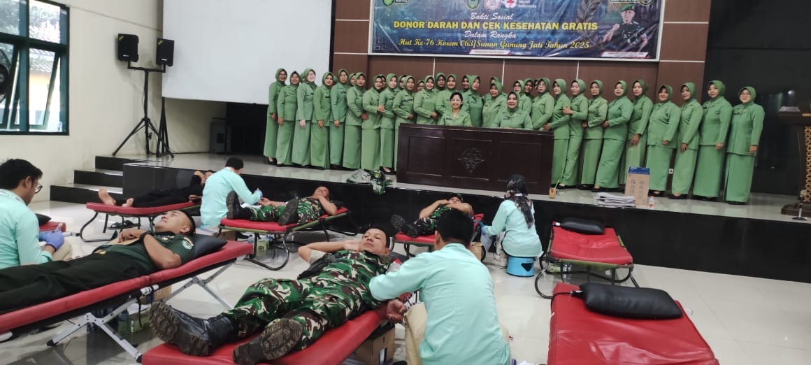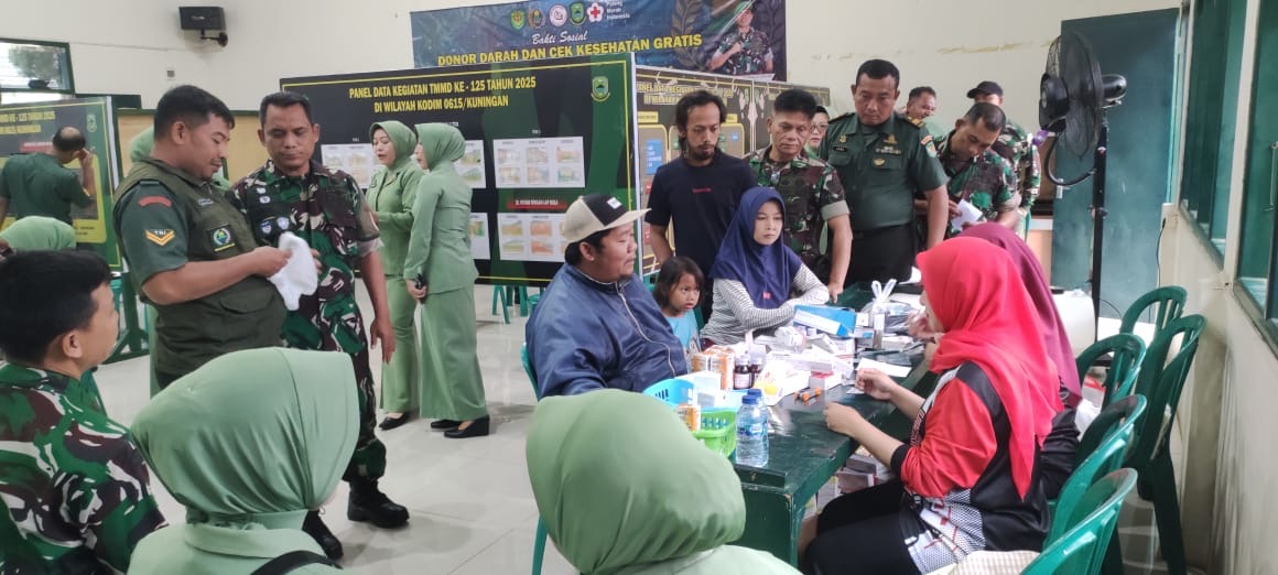Bingkaiwarta, KUNINGAN – Dalam rangka merayakan HUT Korem 063/Sgj ke-76 dan HUT Kodim 0615/Kuningan ke-62 tahun 2025, telah dilaksanakan kegiatan bakti sosial (baksos) donor darah dan cek kesehatan, di Aula Gedung Serba Guna Mashud Wisnusaputra Kodim 0615/Kuningan, Kamis (4/12/2025). Acara yang dihadiri sekitar 120 orang ini menjadi wujud kepedulian sosial lembaga pertahanan terhadap masyarakat.