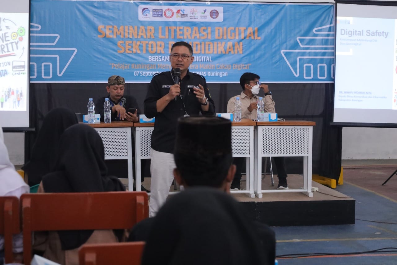 Hal ini disampaikan Kepala Dinas Komunikasi dan Informatika Kabupaten Kuningan Dr. Wahyu Hidayah, M.Si. pada kegiatan Literasi Digital Sektor Pendidikan di SMK Karnas Kuningan, Rabu (7/9/2022) dengan mengusung tema “Peningkatan Kapasitas Siswa dengan Cakap Digital”.