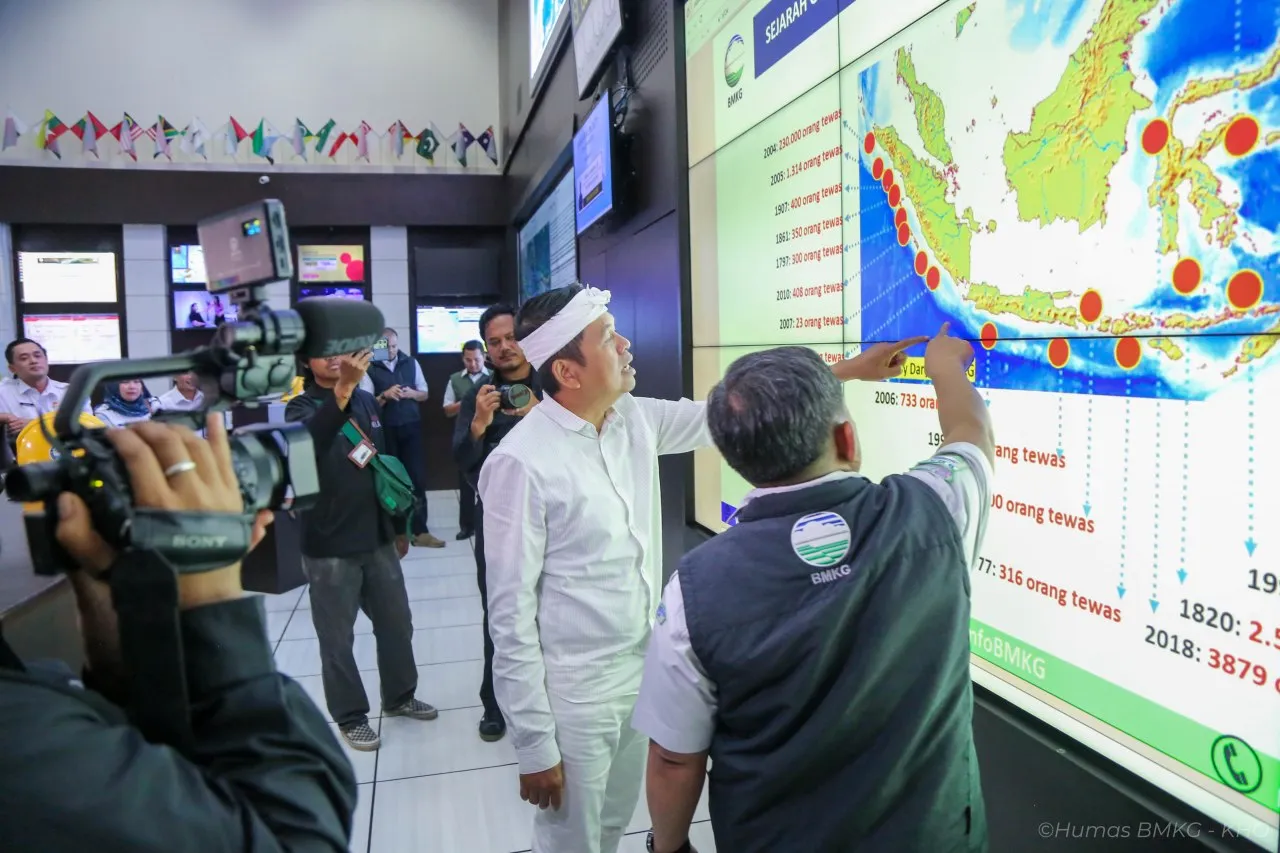 Sebagai bagian dari rangkaian kunjungan, Gubernur Jawa Barat beserta rombongan meninjau ruang operasional CEWS (Climate Early Warning System), MEWS (Meteorological Early Warning System), dan INATEWS (Indonesia Tsunami Early Warning System).