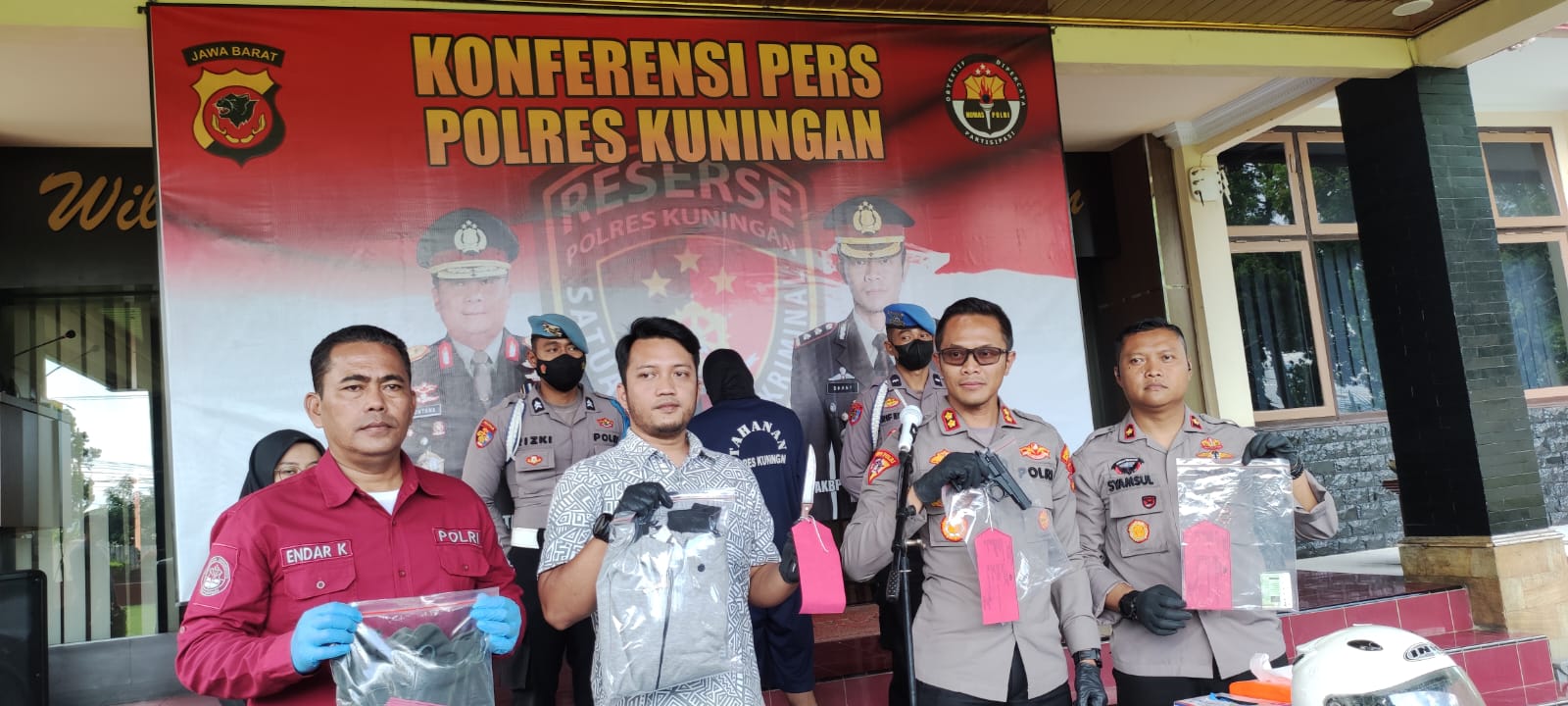 “Merasa sudah terancam, keempat korban ini akhirnya mengeluarkan uang miliknya masing masing dengan total Rp. 465.000,-. Pelaku juga sempat memukulkan pistol korek api itu ke salah satu korban dan mengenai muka bagian tulang pipi sebelah kiri hingga menyebabkan luka memar dan bengkak,” ujar Kapolres Kuningan AKBP Dhany Aryanda yang didampingi Wakapolres Kompol Syamsul Bagja Bahtiar, Kasat Reskrim AKP Hafid Firmansyah dan Kasi Humas Polres Kuningan, Rabu (11/1/2023).