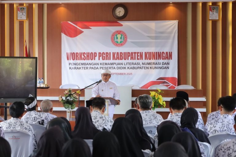 Bingkaiwarta, KUNINGAN – Bupati Kuningan, Dr. H. Dian Rachmat Yanuar, menekankan pentingnya peran guru dalam membentuk watak, menyalakan semangat, dan menuntun peserta didik menuju masa depan. Hal ini disampaikannya saat membuka Workshop Pengembangan Kemampuan Literasi, Numerasi, dan Karakter Peserta Didik Kabupaten Kuningan di Aula SDN 7 Kuningan, Kamis (25/9/2025).