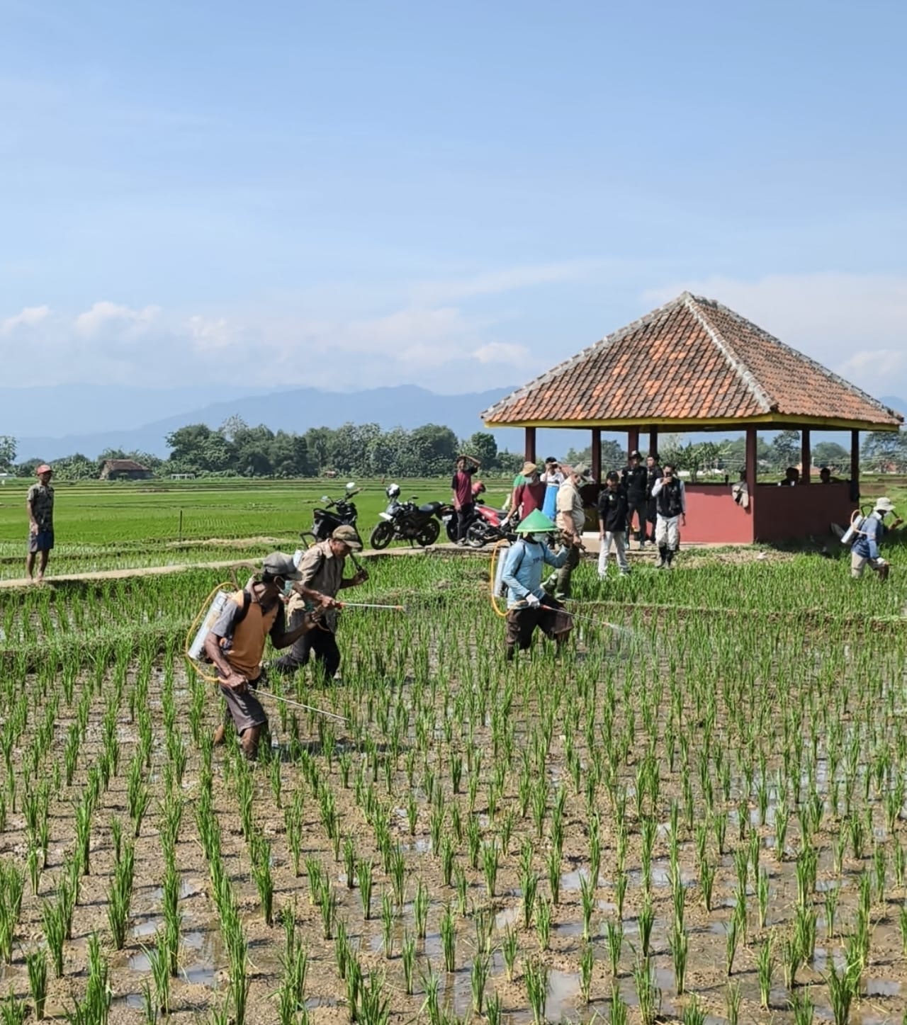 Selain aksi penyemprotan, kegiatan ini juga diisi dengan sosialisasi teknis dan dialog langsung dengan petani untuk menyerap aspirasi serta kebutuhan riil di lapangan.