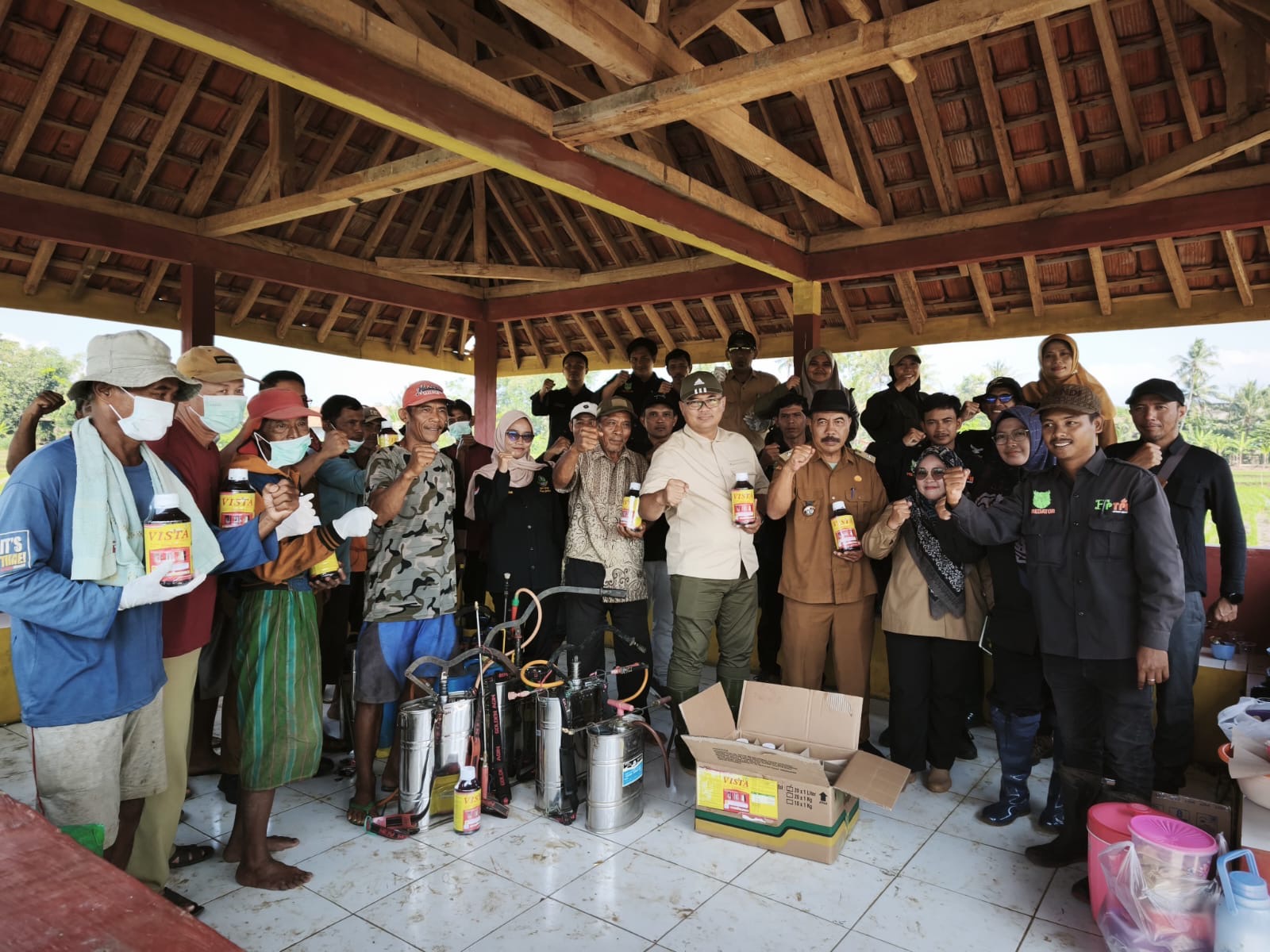 Sebagai dukungan nyata, Dispertan juga menyalurkan bantuan sarana pengendalian berupa 20 botol insektisida jenis Vista 400 SL yang difokuskan untuk areal seluas 20 hektare tersebut.