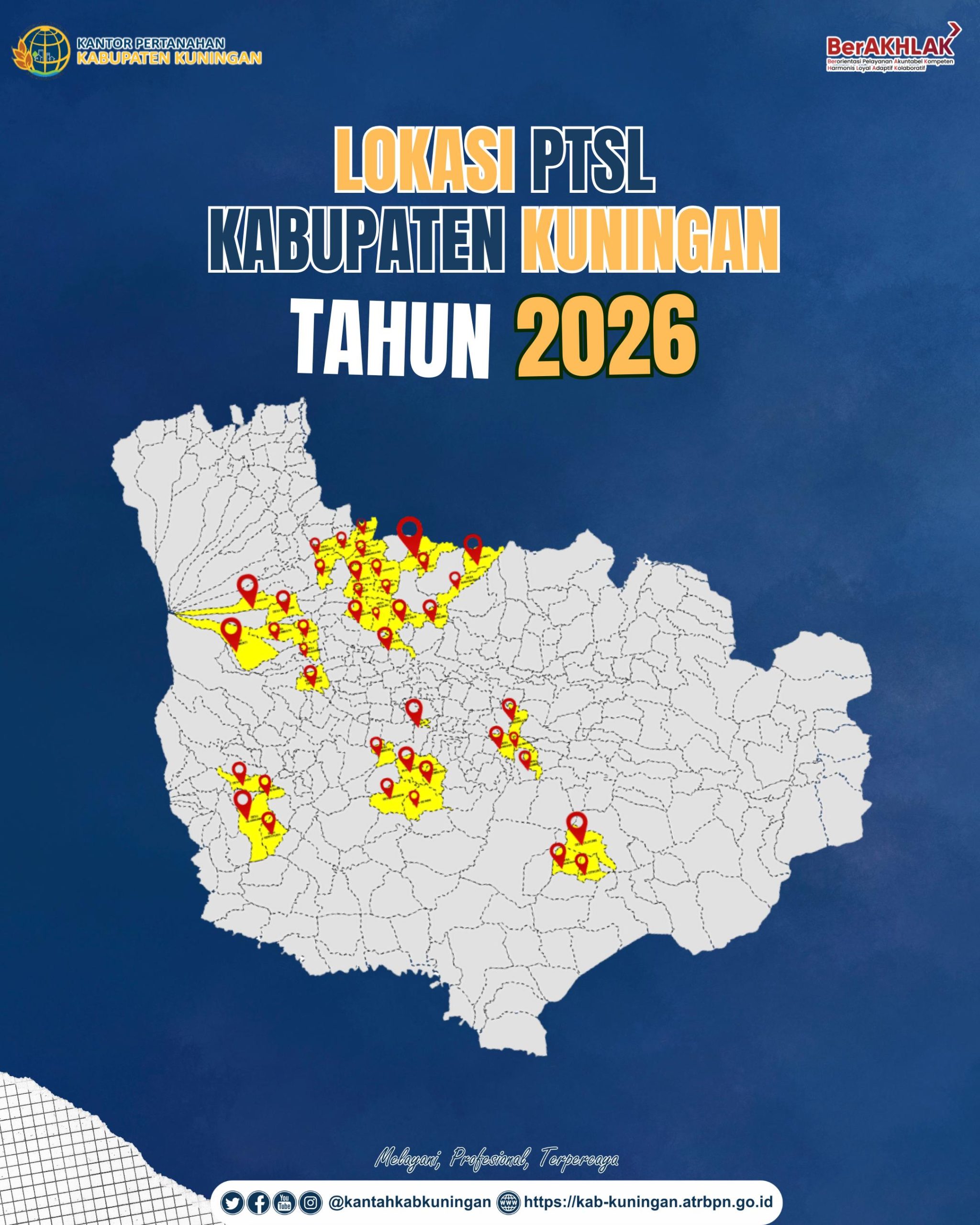 Saat ini, informasi terkait daftar kecamatan dan desa/kelurahan yang menjadi lokasi PTSL Tahun 2026 di Kabupaten Kuningan belum dapat diakses secara resmi dan rinci. Untuk mendapatkan informasi yang akurat dan terbaru mengenai hal ini, disarankan bagi masyarakat untuk selalu mengikuti pengumuman resmi dari Kantor Pertanahan (ATR/BPN) Kabupaten Kuningan melalui situs web resmi atau kanal informasi resmi lainnya.