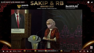 “Penyerahan hasil evaluasi yang bernama SAKIP & RB AWARD 2021 dilaksanakan sebagai bentuk apresiasi dan penghargaan kepada instansi pemerintah yang telah mampu menunjukkan berbagai perubahan dan inovasi dalam tata kelola pemerintahannya,” kata Deputi bidang Reformasi Birokrasi, Akuntabilitas Aparatur, dan Pengawasan Kementerian PANRB Erwan Agus Purwanto.