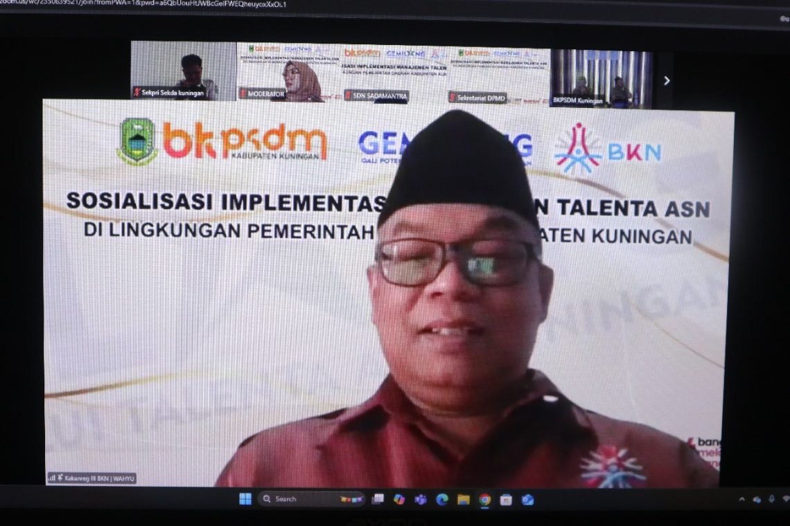 Bingkaiwarta, KUNINGAN – Pemerintah Kabupaten Kuningan secara resmi mengimplementasikan Manajemen Talenta Aparatur Sipil Negara (ASN) sebagai langkah strategis dalam memperkuat reformasi birokrasi dan sistem meritokrasi. Peluncuran program ini dilakukan melalui Zoom Meeting pada Senin (15/9/2025) dan dipimpin langsung oleh Bupati Kuningan, Dr. H. Dian Rachmat Yanuar, dari Ruang Kerja Bupati di Komplek Islamic Center Kuningan.