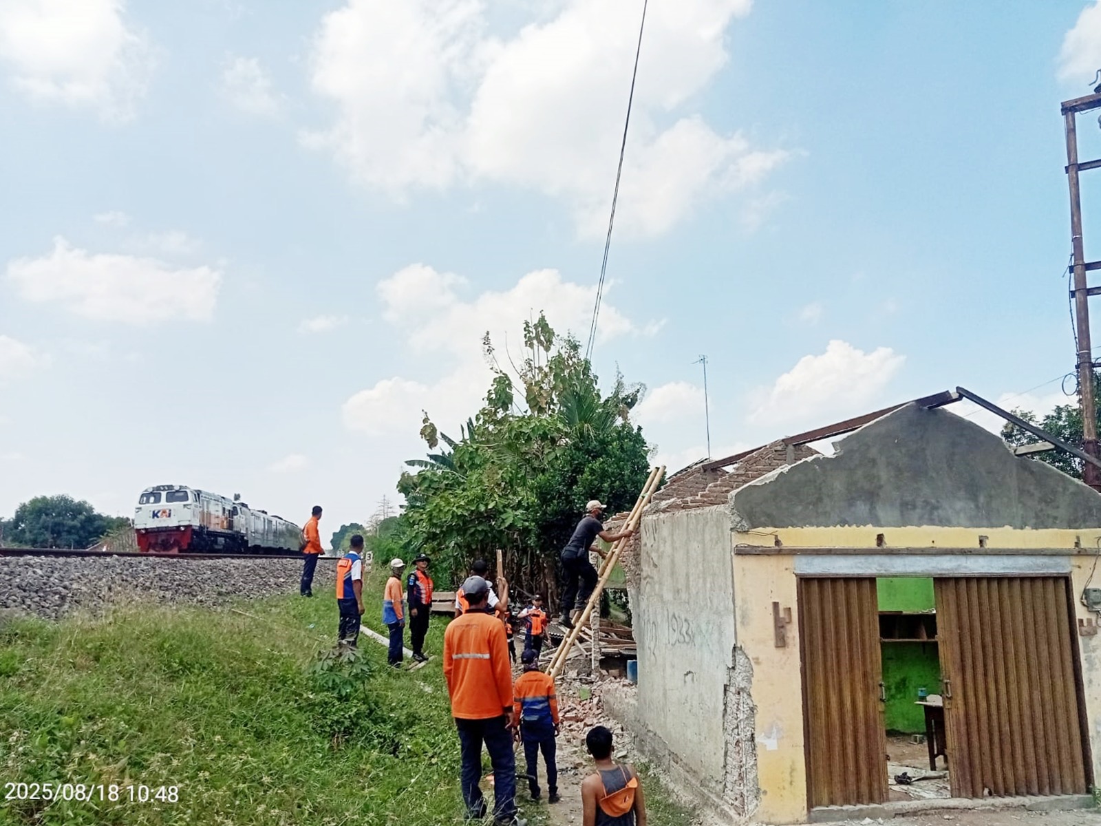 Bingkaiwarta, CIREBON – Guna menjamin keselamatan dan keamanan perjalanan kereta api, KAI Daop 3 Cirebon melakukan penertiban bangunan liar yang berdiri di sekitar perlintasan sebidang. Senin (18/08), telah dilaksanakan penertiban terhadap satu bangunan yang berlokasi di dekat KM 238+2/3 petak jalan Sindanglaut-Ciledug, Desa Karangsuwung, Kecamatan Karangsembung, Kabupaten Cirebon.
