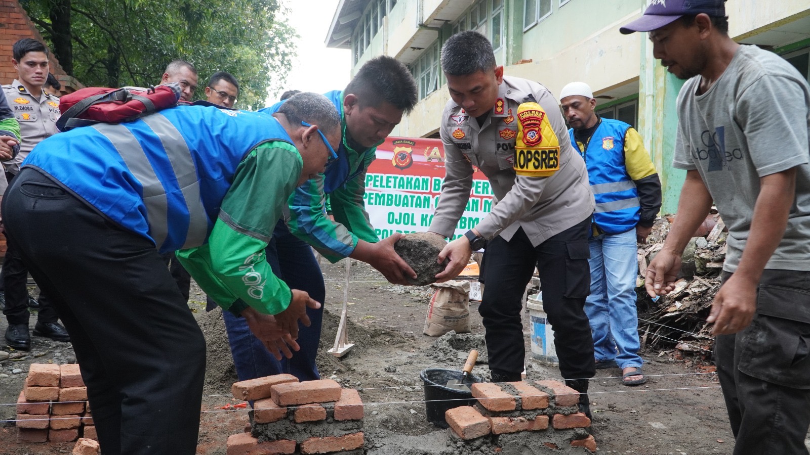 Peletakan batu pertama tersebut menjadi momen simbolis dimulainya pembangunan fasilitas yang diperuntukkan secara khusus bagi para pengemudi Ojol Kamtibmas sebagai bentuk dukungan nyata terhadap aktivitas mereka di lapangan, mengingat kendaraan roda dua merupakan sarana utama dalam menjalankan tugas sehari-hari sekaligus penunjang mobilitas dalam membantu menyampaikan informasi kamtibmas kepada pihak kepolisian.