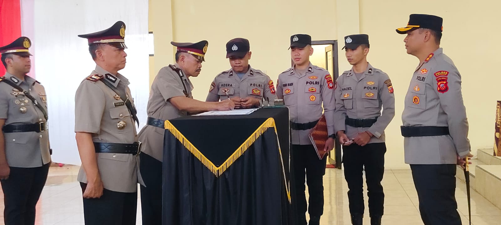 Bingkaiwarta, KUNINGAN – Kapolres Kuningan AKBP M. Ali Akbar mengambil sumpah jabatan dalam serah terima jabatan (sertijab) jajarannya. Sejumlah perwira bergeser ke posisi jabatan dan wilayah lain. Pelaksanaan serah terima jabatan dilakukan di Aula Wira Satya Pratama Mapolres Kuningan, Sabtu (25/4/2025).