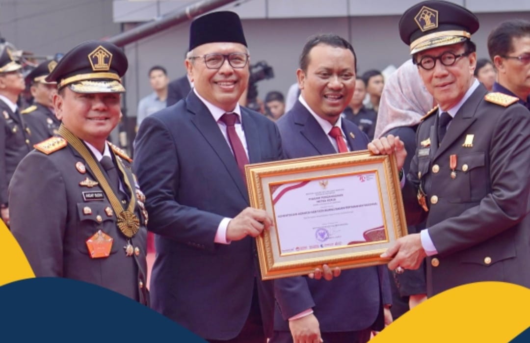 Bingkaiwarta, JAKARTA – Kementerian Agraria dan Tata Ruang/Badan Pertanahan Nasional (ATR/BPN) menerima Piagam Penghargaan Mitra Kerja atas Percepatan Penyertipikatan Tanah di Pulau Nusakambangan. Sekretaris Jenderal (Sekjen) Kementerian ATR/BPN, Suyus Windayana yang hadir mewakili Menteri ATR/Kepala BPN, Agus Harimurti Yudhoyono (ATR/BPN) menerima penghargaan tersebut pada saat Upacara Hari Pengayoman ke-79 Tahun 2024 di Lapangan Kementerian Hukum dan Hak Asasi Manusia (HAM), Jakarta, Senin (19/08/2024).