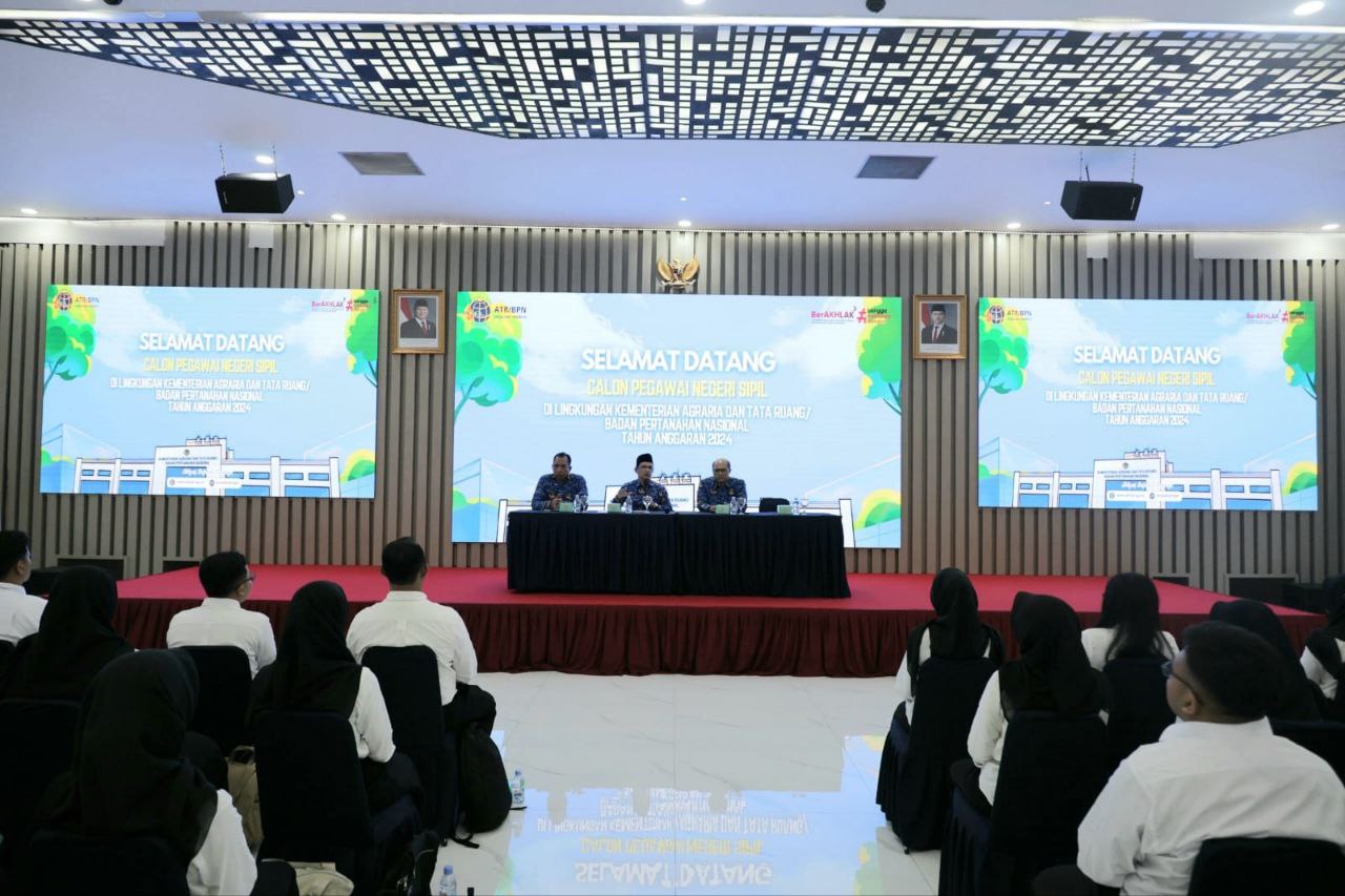 Bingkaiwarta, JAKARTA – Kementerian Agraria dan Tata Ruang/Badan Pertanahan Nasional (ATR/BPN) menggelar kegiatan Pembekalan Calon Pegawai Negeri Sipil (CPNS) Tahun Anggaran (TA) 2024, di Aula Prona, Kementerian ATR/BPN, Jakarta, Senin (2/6/2025). Kegiatan ini dibuka oleh Kepala Badan Pengembangan Sumber Daya Manusia (BPSDM), Agustyarsyah, yang hadir mewakili Sekretaris Jenderal (Sekjen) Kementerian ATR/BPN, Pudji Prasetijanto Hadi.