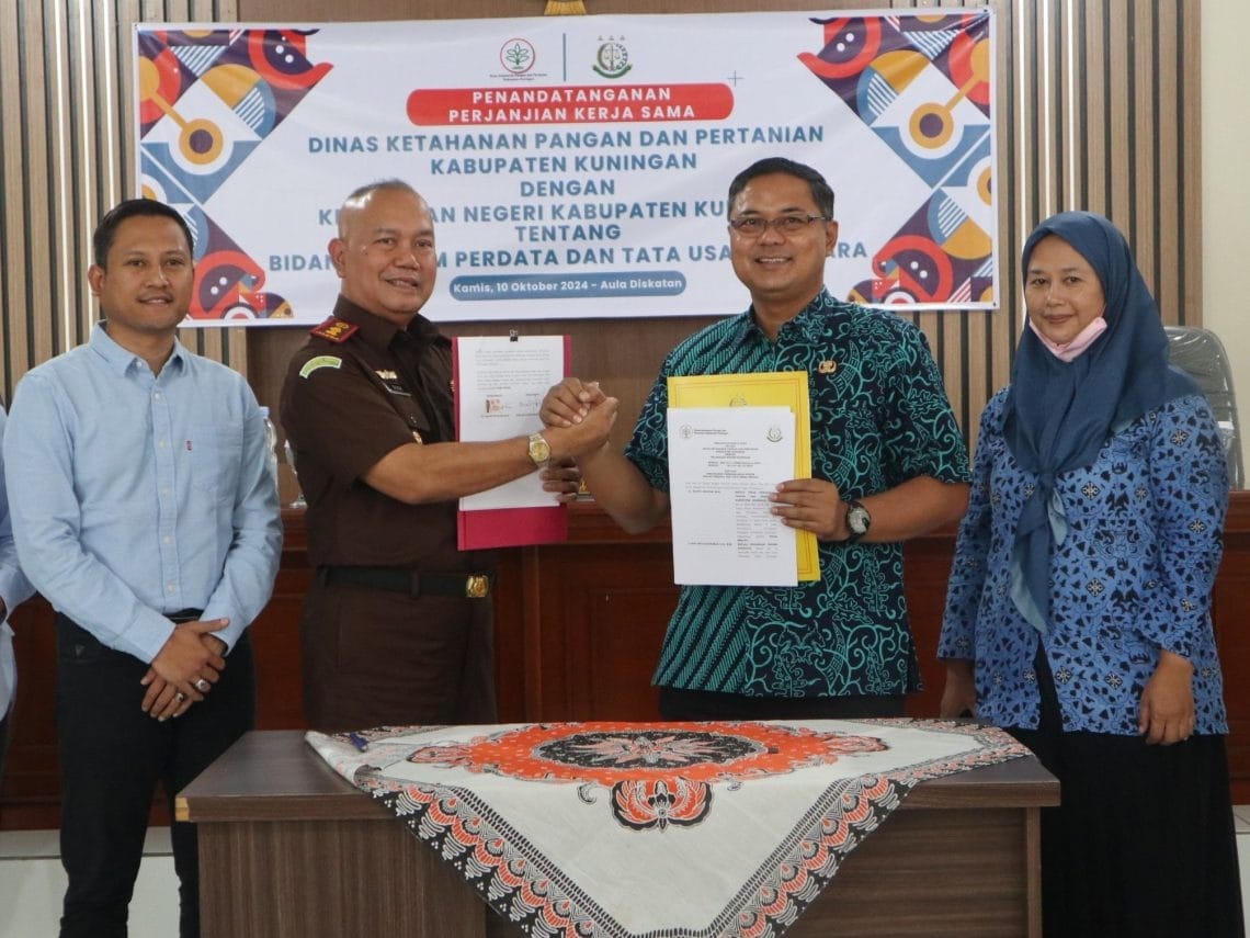 Bingkaiwarta, KUNINGAN – Dinas Ketahanan Pangan dan Pertanian Kabupaten Kuningan telah melaksanakan penandatanganan Perjanjian Kerja Sama dengan Kejaksaan Negeri Kuningan, di Aula Diskatan, Kamis (10/10/2024).