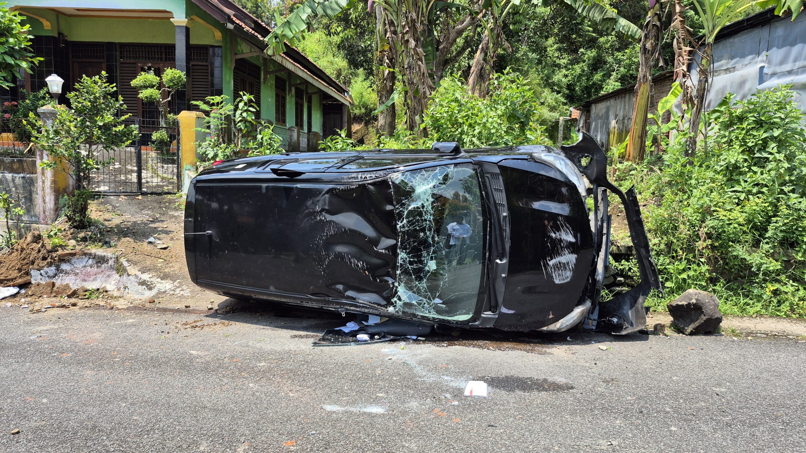 “Dugaan sementara, pengemudi kurang berhati-hati dan tidak mengantisipasi kondisi jalan yang ada sehingga kendaraan kehilangan kendali dan akhirnya terbalik,” ungkap IPTU Sri Martini.