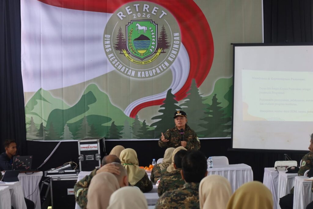 Pernyataan tersebut disampaikan saat Bupati membuka sekaligus menjadi narasumber dalam Workshop Penguatan Sinergitas Dinas Kesehatan Kabupaten Kuningan Tahun 2026. Kegiatan yang digelar dalam bentuk retreat tersebut berlangsung di Buper Pasir Batang, Desa Karangsari, Kecamatan Darma, Jumat (23/1/2026).
