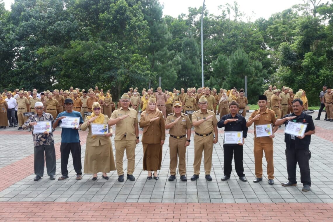 Dalam kesempatan yang sama, Bupati memberikan apresiasi tertinggi kepada Dinas Ketahanan Pangan dan Pertanian (Diskatan) yang dipimpin Dr. Wahyu Hidayah. Menurutnya, Diskatan mampu membuat sektor pertanian berkembang meskipun terkendala anggaran daerah, berkat kerja keras, kepemimpinan solid, dan komunikasi efektif dengan pusat. “Ini adalah birokrasi yang bergerak, hadir di lapangan, dan berikan solusi nyata – integritas dan konsistensi menjadi kuncinya,” tegas Bupati.