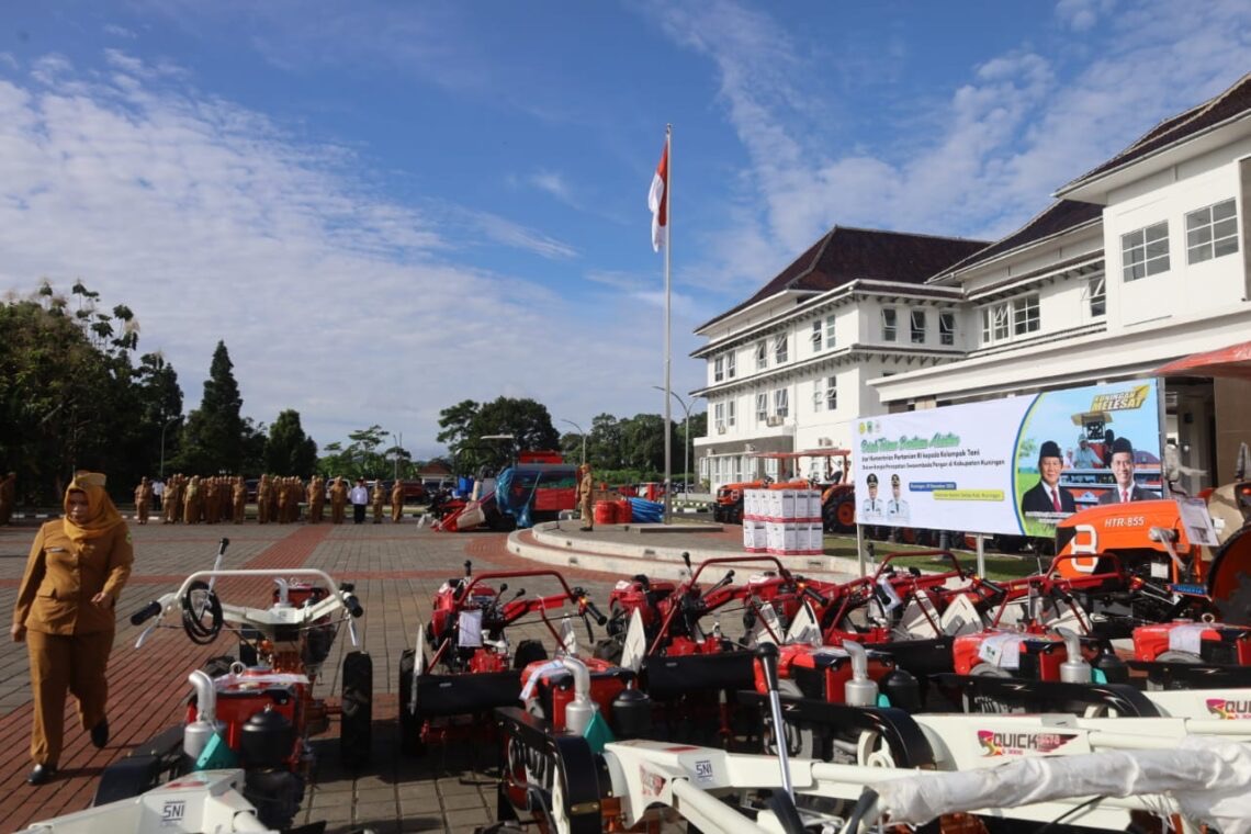 Bingkaiwarta, KUNINGAN – Pemerintah Kabupaten Kuningan memperkuat komitmen terhadap sektor pertanian sebagai tulang punggung ketahanan pangan daerah dan nasional melalui penyerahan alat dan mesin pertanian (alsintan) dari Kementerian Pertanian RI. Kegiatan yang berlangsung di Halaman Setda KIC Kabupaten Kuningan, Senin (29/12/2025) ini bertujuan untuk percepatan Luas Tambah Tanam (LTT) dan penguatan swasembada pangan tahun ini.