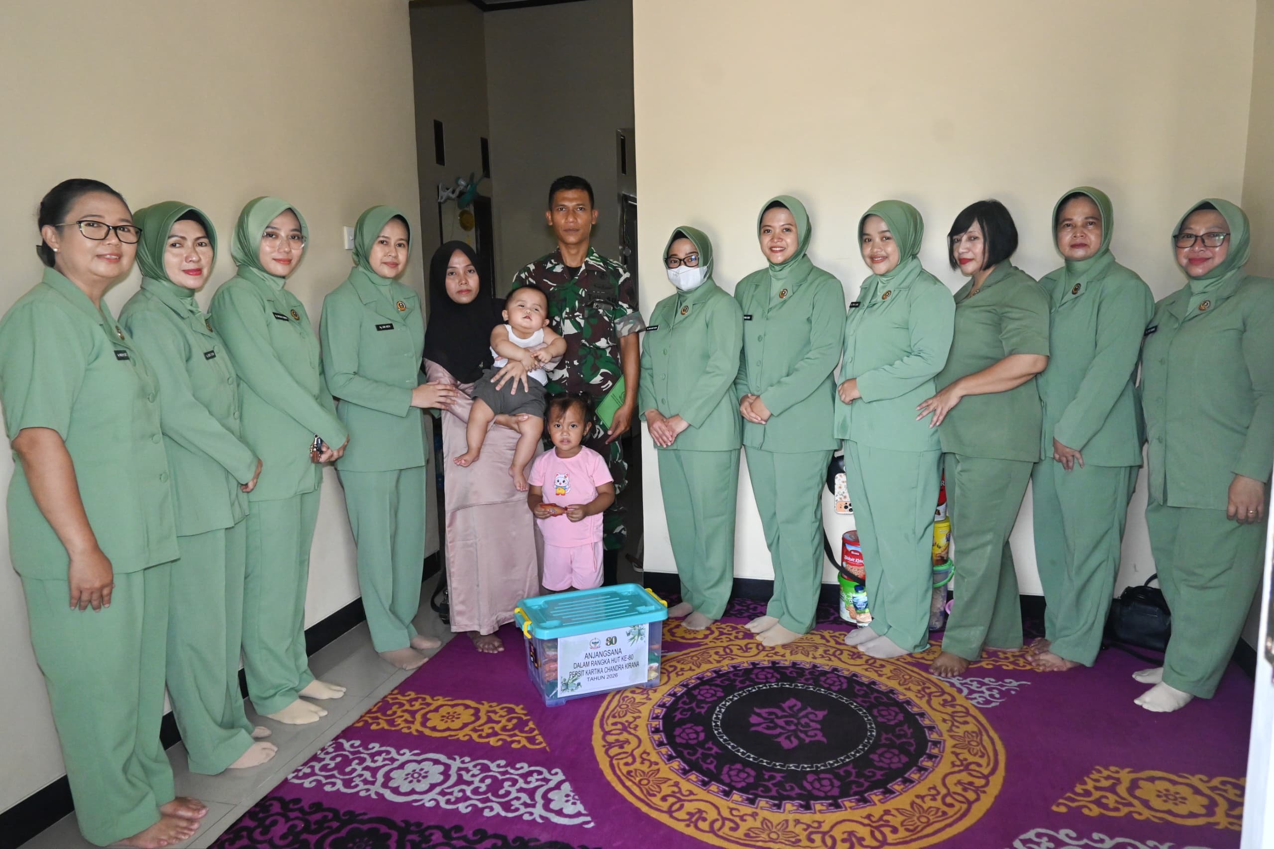 Tidak hanya itu, perhatian juga ditujukan kepada keluarga Serda Sunarto, khususnya bagi putranya, Ananda Muhammad Rafardhan Zavier, yang sedang dalam masa pemulihan kesehatan. Kehadiran para ibu Persit diharapkan mampu membawa semangat baru dan kekuatan bagi keluarga dalam menghadapi cobaan tersebut.