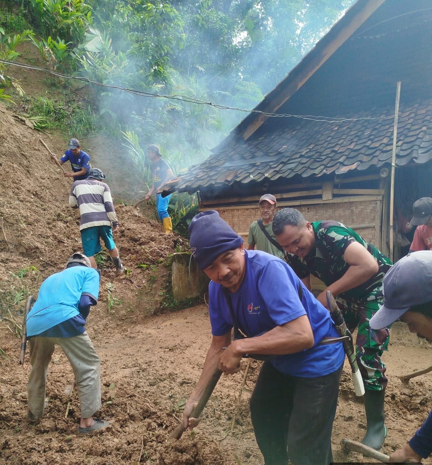 Babinsa Koramil 1504/Subang, Serda Wahyono, segera berkoordinasi dengan perangkat desa dan masyarakat setempat. Pukul 07.00 WIB, mereka bergotong royong membersihkan material longsor untuk mencegah kerusakan lebih lanjut.