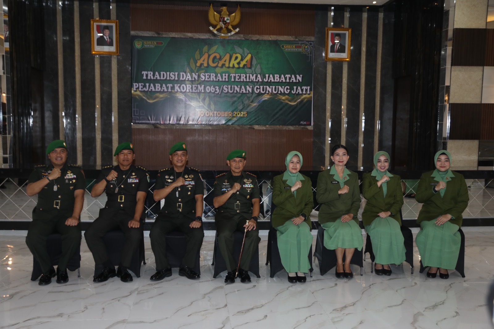 Acara ditutup dengan doa bersama dan sesi foto sebagai simbol kebersamaan dan semangat baru di lingkungan Korem 063/Sunan Gunung Jati. (Abel)