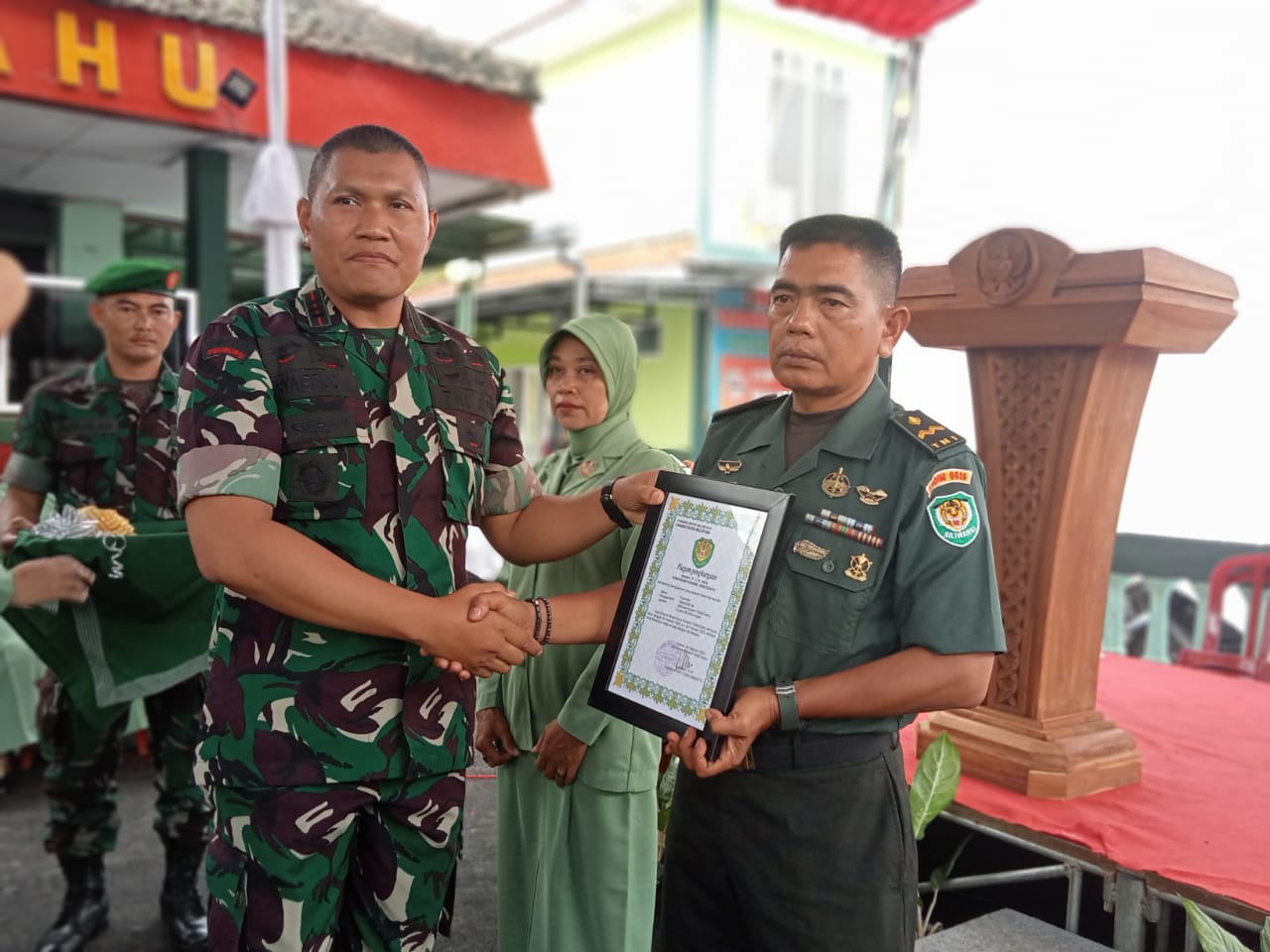 Bingkaiwarta, CIDAHU – Danramil 1508/Cidahu Kapten Inf Syaefudin S.I.P melepas 1 anggotanya yang memasuki masa purna tugas, yakni Pelda Rusmadi, di Halaman Koramil 1508/Cidahu, Selasa (28/2/2023).