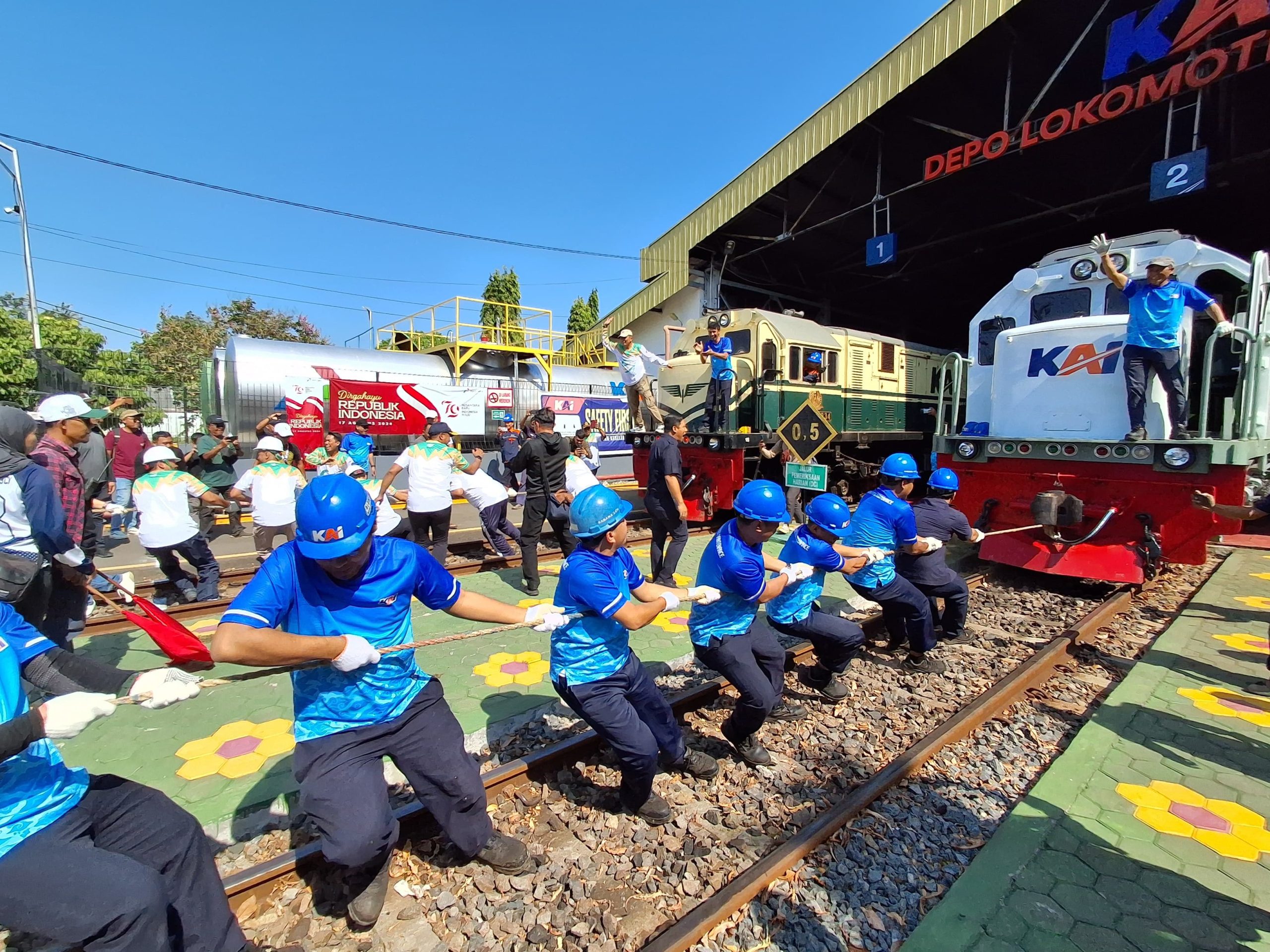 Bingkaiwarta, CIREBON – Dalam rangka memeriahkan Hari Ulang Tahun ke-79 KAI tahun 2024, Daop 3 Cirebon menggelar Lomba Tarik Lokomotif antar pekerja. Kegiatan ini dilaksanakan di lingkungan UPT Dipo Lokomotif Cirebon, hari ini Jumat (13/09/2024).