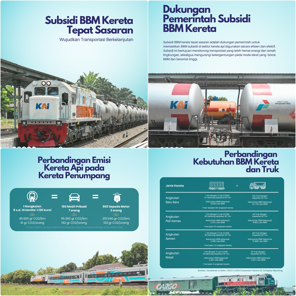 Rokhmad juga menjelaskan, bahwa penggunaan kereta api untuk angkutan barang lebih ramah lingkungan dibandingkan transportasi darat lainnya. Ia menekankan pentingnya dukungan dari semua pihak, termasuk pemberian kuota BBM subsidi bagi transportasi kereta api.