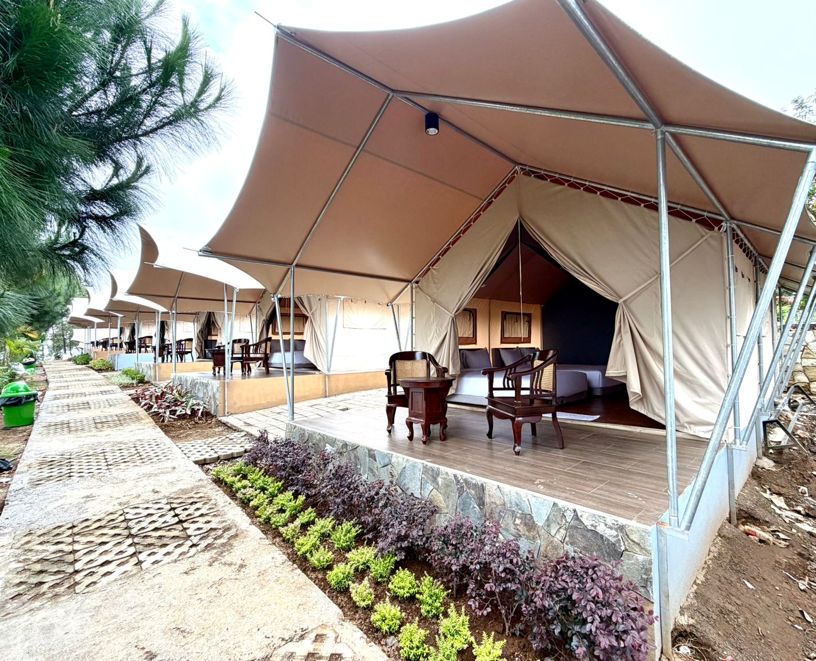Seluruh unit glamping dirancang menghadap ke kawasan terbuka, sehingga pemandangan alam menjadi bagian tak terpisahkan dari pengalaman menginap.