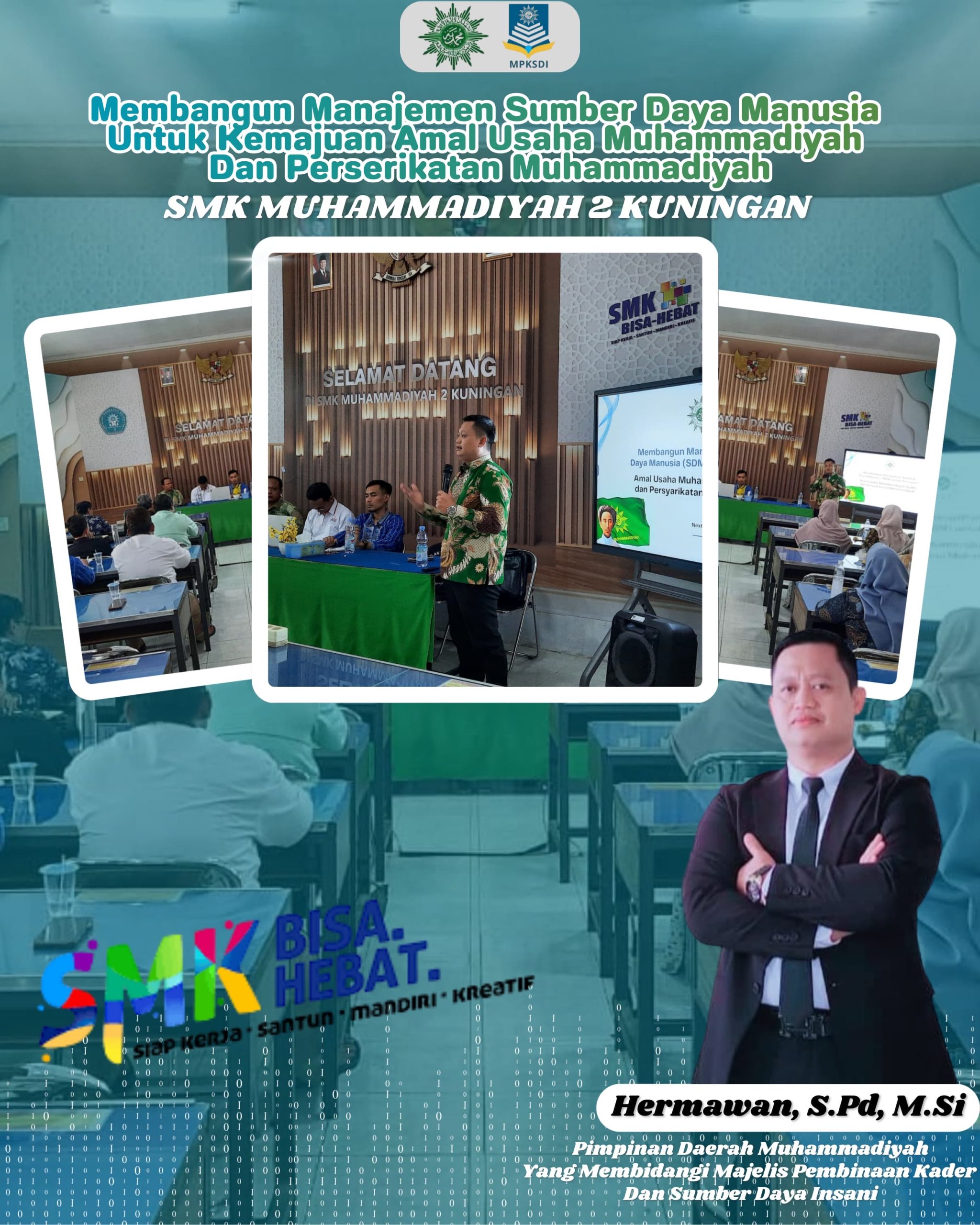 Bingkaiwarta, CIGUGUR – Pimpinan Daerah Muhammadiyah (PDM) Kuningan melalui Majelis Pembinaan Kader dan Sumber Daya Insani (MPKSDI) melaksanakan kegiatan pembinaan serta penguatan manajemen sumber daya manusia (SDM) untuk Amal Usaha Muhammadiyah (AUM) dan Persyarikatan. Kegiatan yang digelar di SMK Muhammadiyah 2 Kuningan ini dipimpin langsung oleh Hermawan, M.Si, selaku pembidang MPKSDI PDM Kuningan.