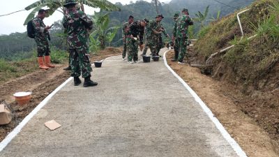 Pembangunan Rabat Beton Jalan TMMD Imbangan Kodim Kuningan Tuntas Dikerjakan