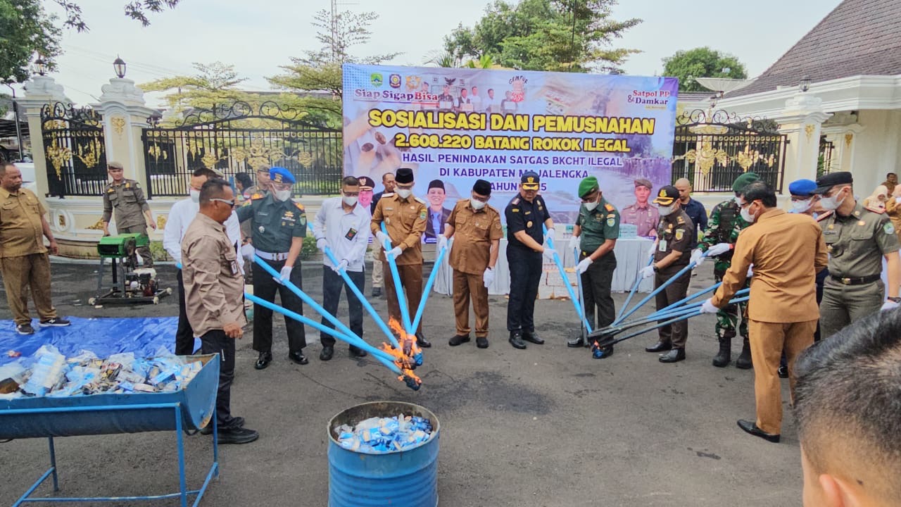 “Sebanyak 2.608.220 batang rokok ilegal dimusnahkan dengan nilai barang mencapai Rp 3,873 miliar, serta memiliki potensi kerugian negara sebesar Rp 1,945 miliar,” jelas Bupati.