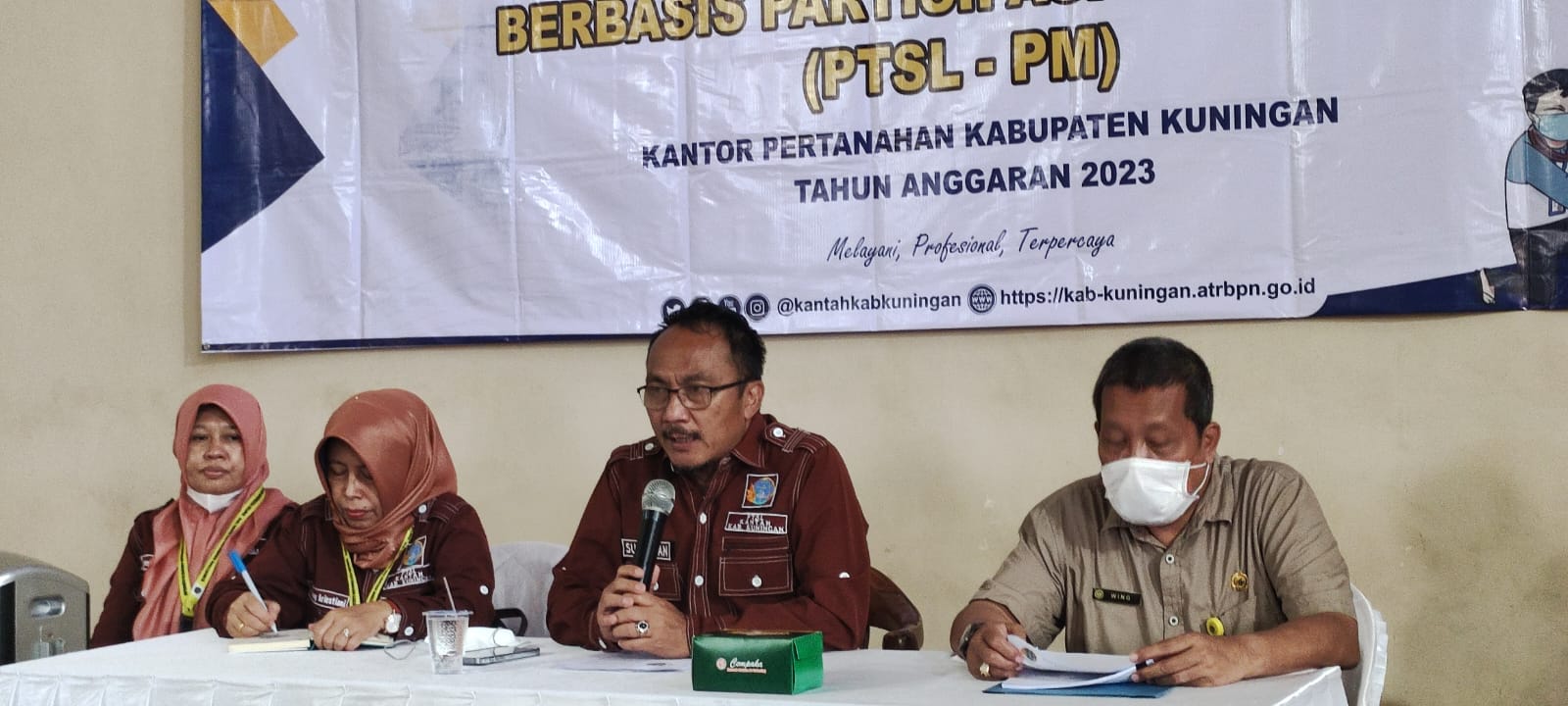 - Pendaftaran Tanah Sistematis Lengkap Berbasis Partisipasi Masyarakat (PTSL-PM), target peta bidang tanah 61.408 bidang, dan target Sertipikat 30.864 bidang, tersebar di 30 Desa 10 kecamatan se-Kabupaten Kuningan.