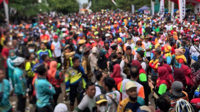 Bingkaiwarta, KUNINGAN – Ribuan peserta padati area komplek KIC Kuningan di Jl. Raya Soekarno Hatta Kuningan, Minggu (19/06/2022). Mereka datang dari berbagai pelosok daerah untuk mengikuti Sepeda Sehat, Jalan Sehat dan Senam Sehat yang diselenggarakan oleh Dinas Pendidikan dan Kebudayaan Kabupaten Kuningan.