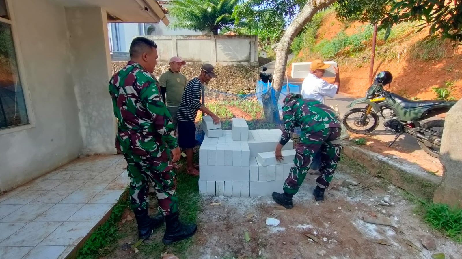 Dalam pelaksanaannya, personel TNI yang terlibat antara lain Sertu Hartoyo (Babinsa), Serma Deni, dan tiga anggota TNI lainnya. Mereka bergotong royong bersama keluarga besar Arman serta warga sekitar RT 03/RW 02.