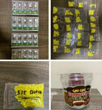 Barang bukti yang berhasil disita berupa 40 butir obat jenis Tramadol HCI, 935 butir obat jenis Dextromertophan, uang tunai Rp.150.000, 2 pax plastik klip bening, 1 buah tas selempang merk Baepack warna Cream, 1 handphone Oppo A37f, dan 1 buah toples bekas merk Cho Cho.