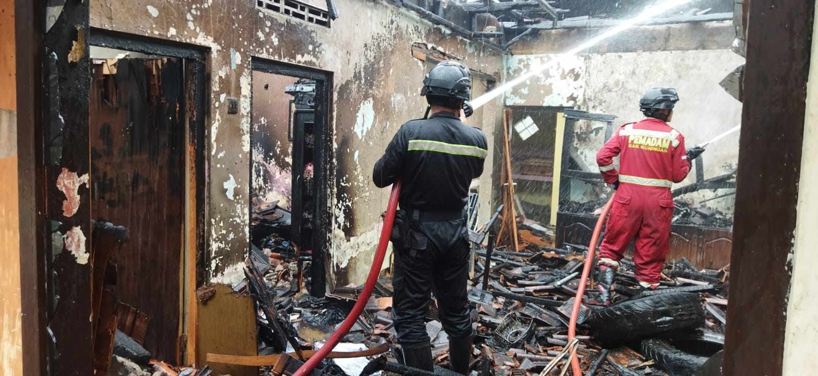 Ia bersama regu Damkar langsung melakukan pemadaman dengan dibantu aparat desa setempat, anggota Polsek Kadugede, anggota Koramil Kadugede dan masyarakat. Dan api berhasil dipadamkan pada pukul 14.30 WIB.