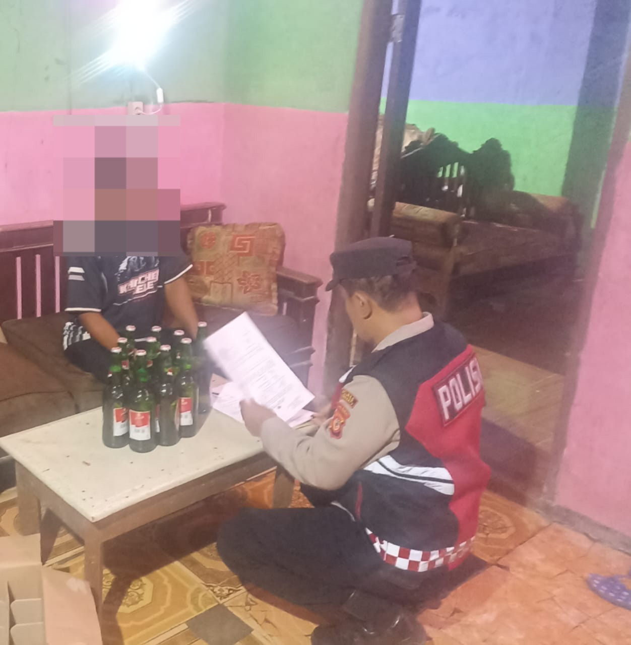 Dari hasil pelaksanaan, petugas mengamankan 10 botol minuman keras dari seorang warga berinisial S (55 tahun), serta satu unit knalpot brong dari seorang pemuda berinisial D (25 tahun).