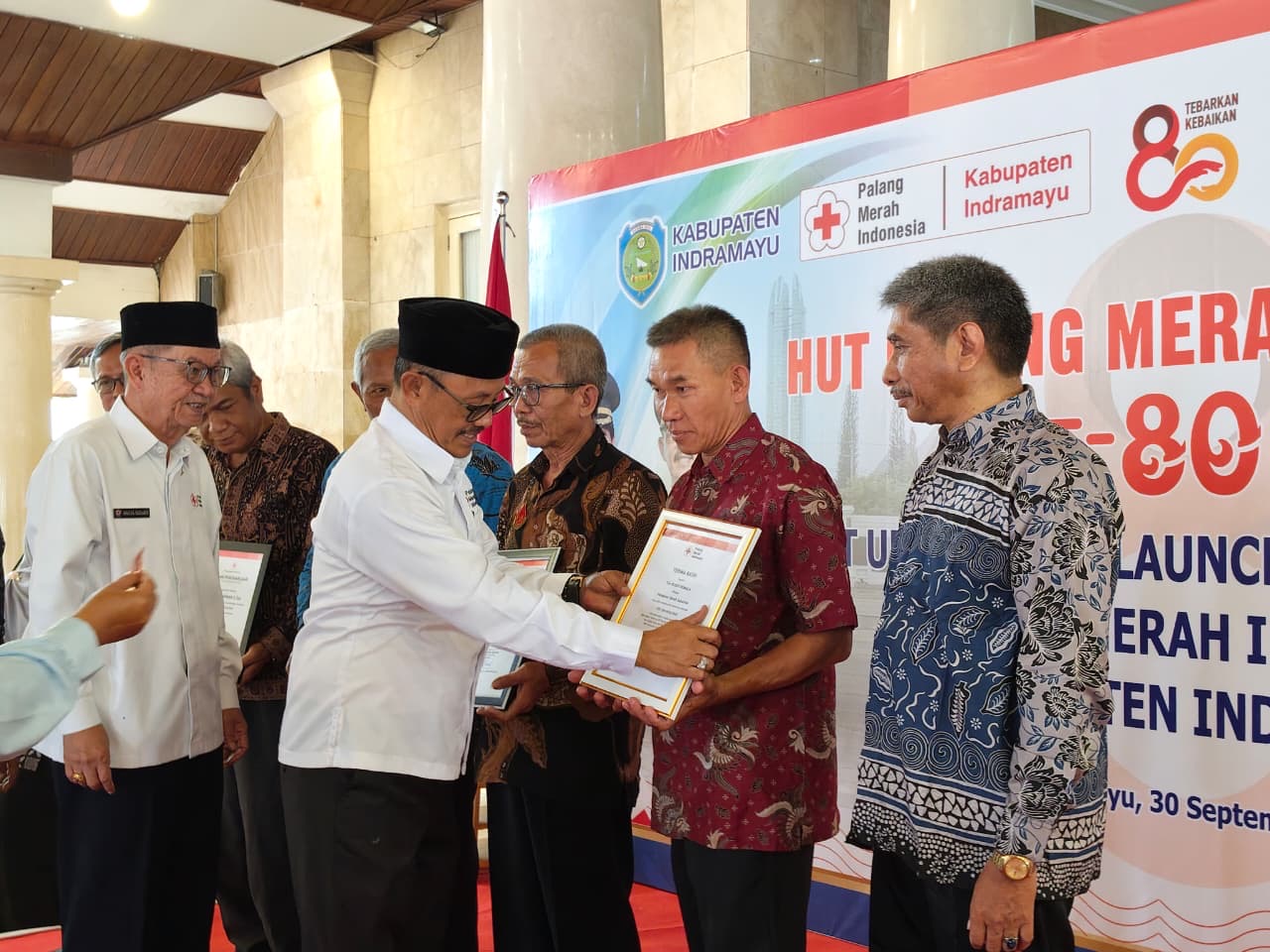Rangkaian acara dimeriahkan dengan penyerahan piagam penghargaan kepada pendonor darah yang telah mendonorkan lebih dari 50 kali, 75 kali, hingga 100 kali. Wabup juga menyerahkan trofi lomba gerak jalan HUT PMI ke-80 kepada PMR Madya SMPN 1 Indramayu dan PMR Wira SMAN 1 Kandanghaur.